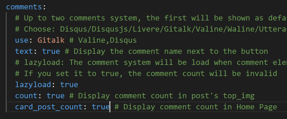 - 根据你使用的 Hexo 主题的不同,修改评论配置,这里我以 hexo-butterfly 主题为例
